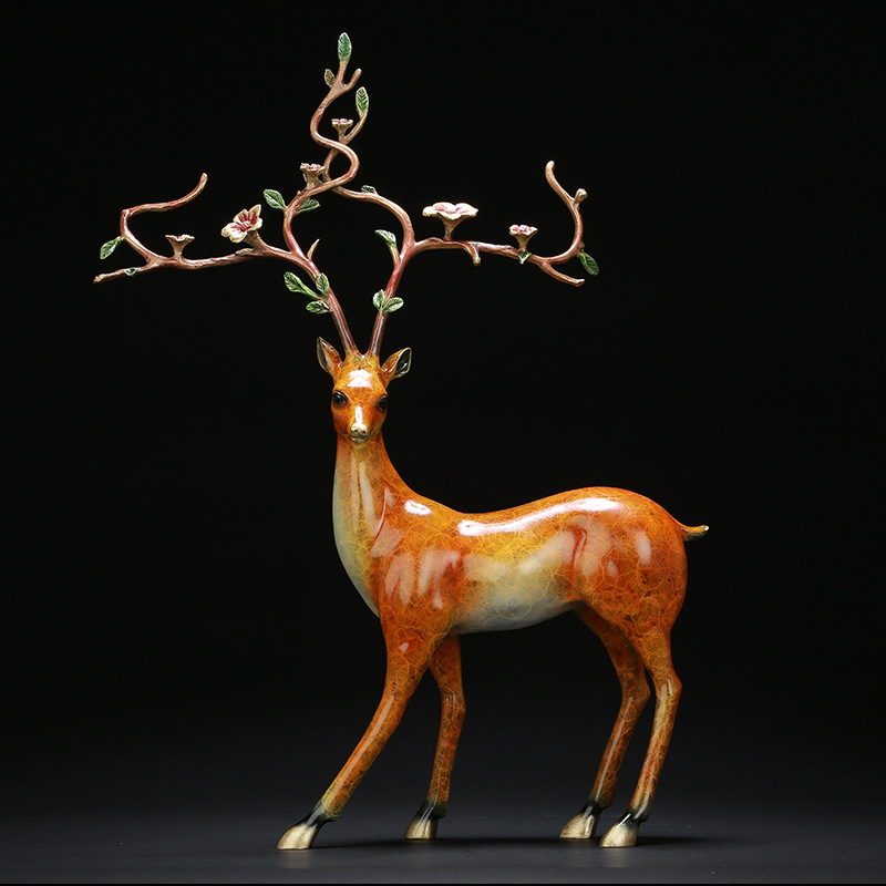 純銅梅花鹿銅彩麋鹿家居客廳擺件祿路高升2690