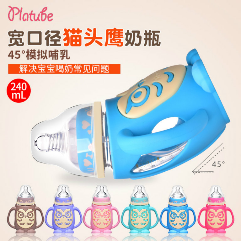 【品名】卡通貓頭鷹奶瓶 【包裝】高檔禮盒單個包裝
