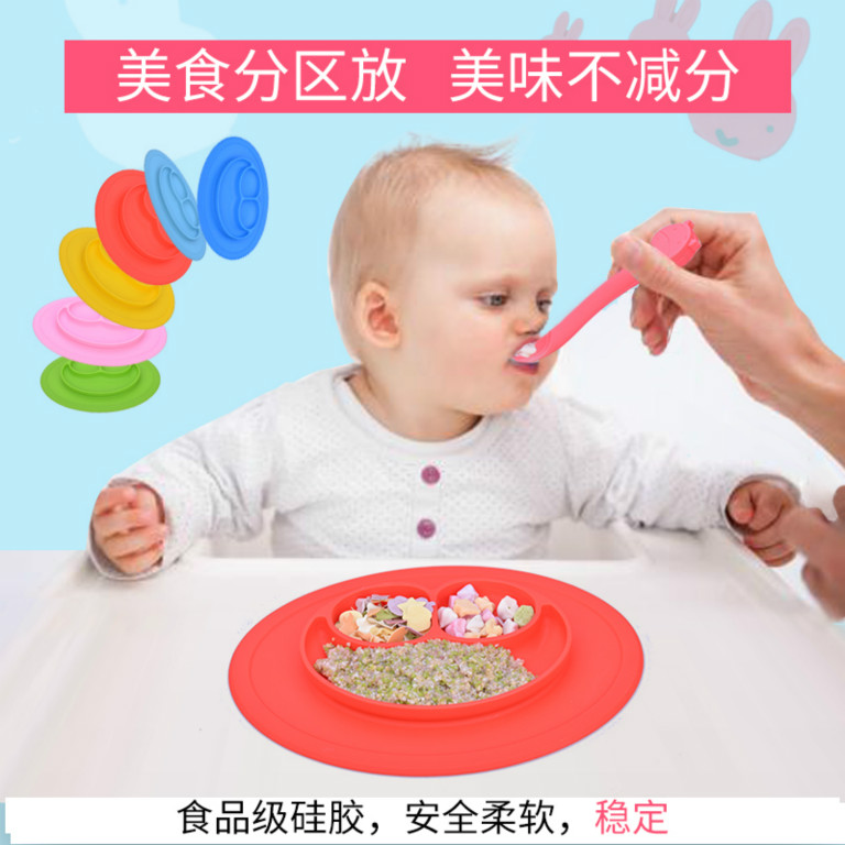 3.餐盤+餐墊一體式創(chuàng)新設(shè)計(jì),吸力吸盤直接吸附在桌面上,防止寶寶手動(dòng)打翻