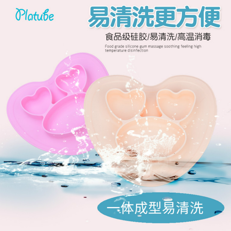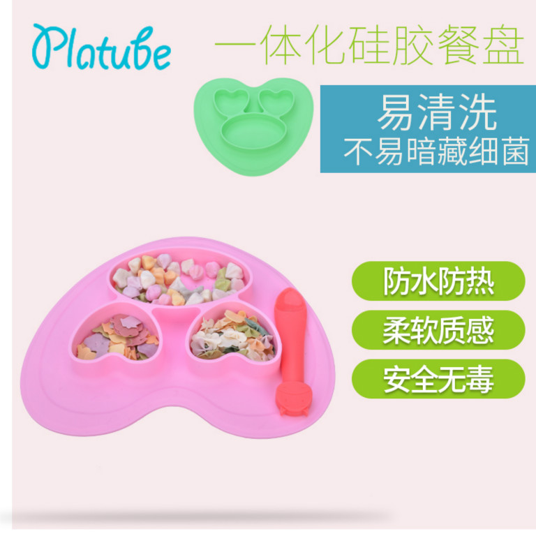 品名:一體愛心硅膠餐盤 包裝:opp包裝