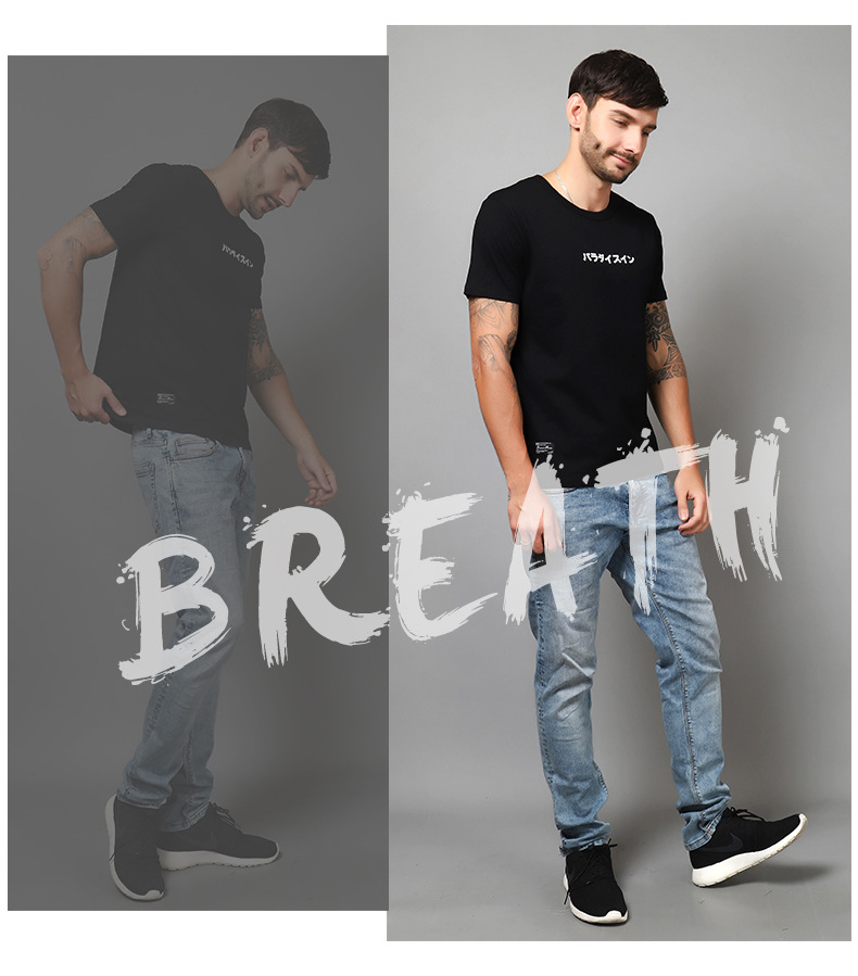 廠家直銷2018T恤男 春夏新品短袖男士個性潮流寬松圓領(lǐng)全棉