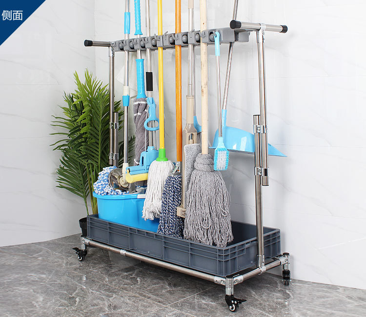 011陶瓷不銹鋼可移動拖把架落地金屬收納墩布架子10掛12鉤