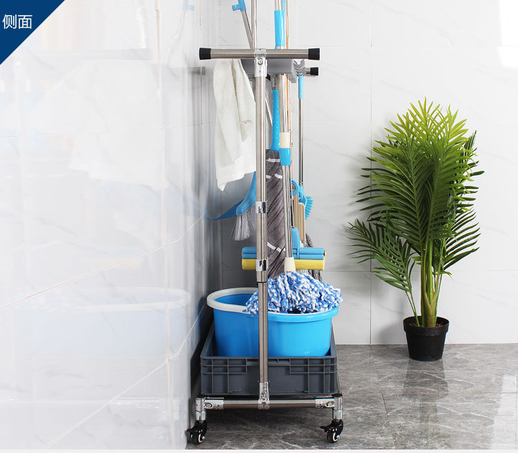 011陶瓷不銹鋼可移動拖把架 落地金屬收納墩布架20掛24鉤