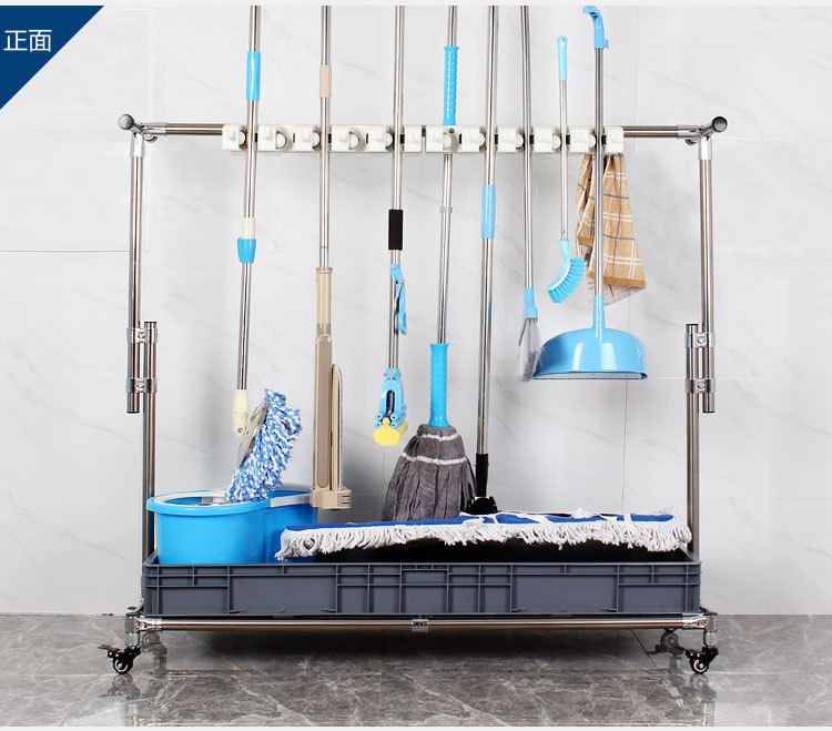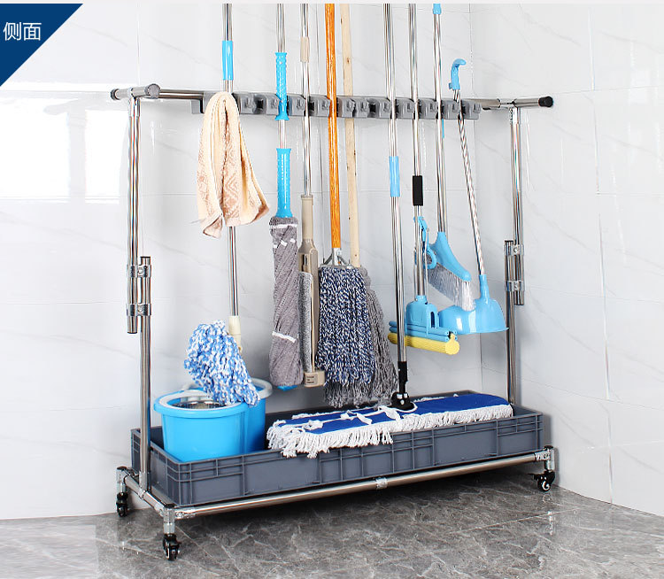 16掛不銹鋼可移動拖把架落地式掛架掃把墩布置物架011