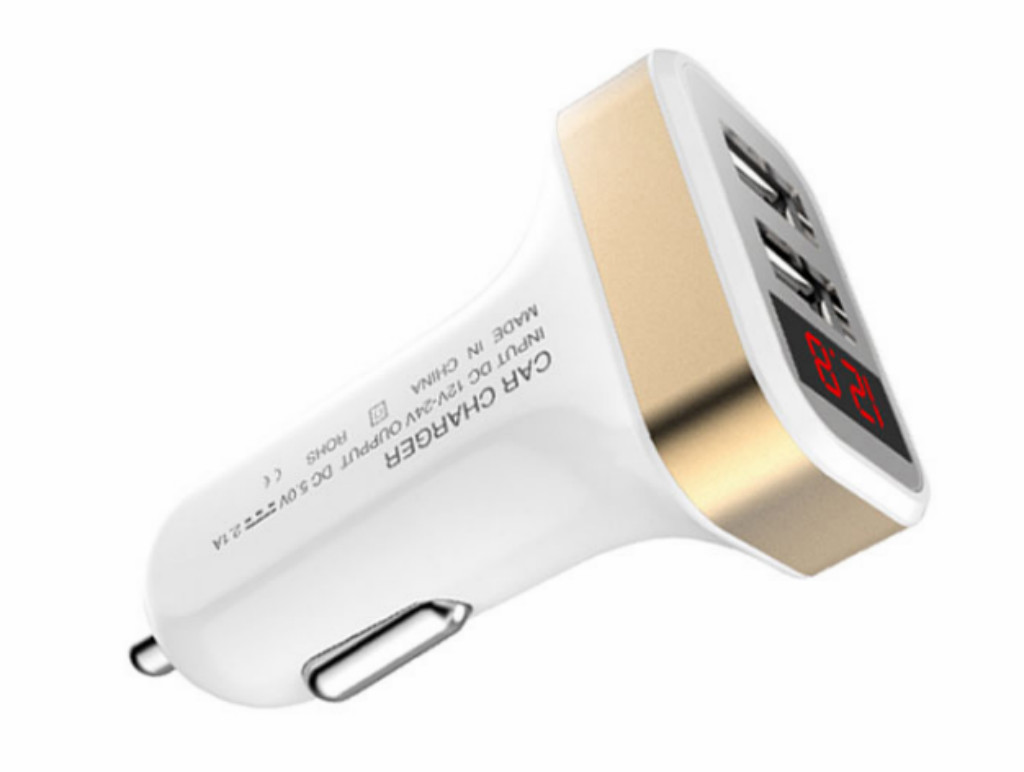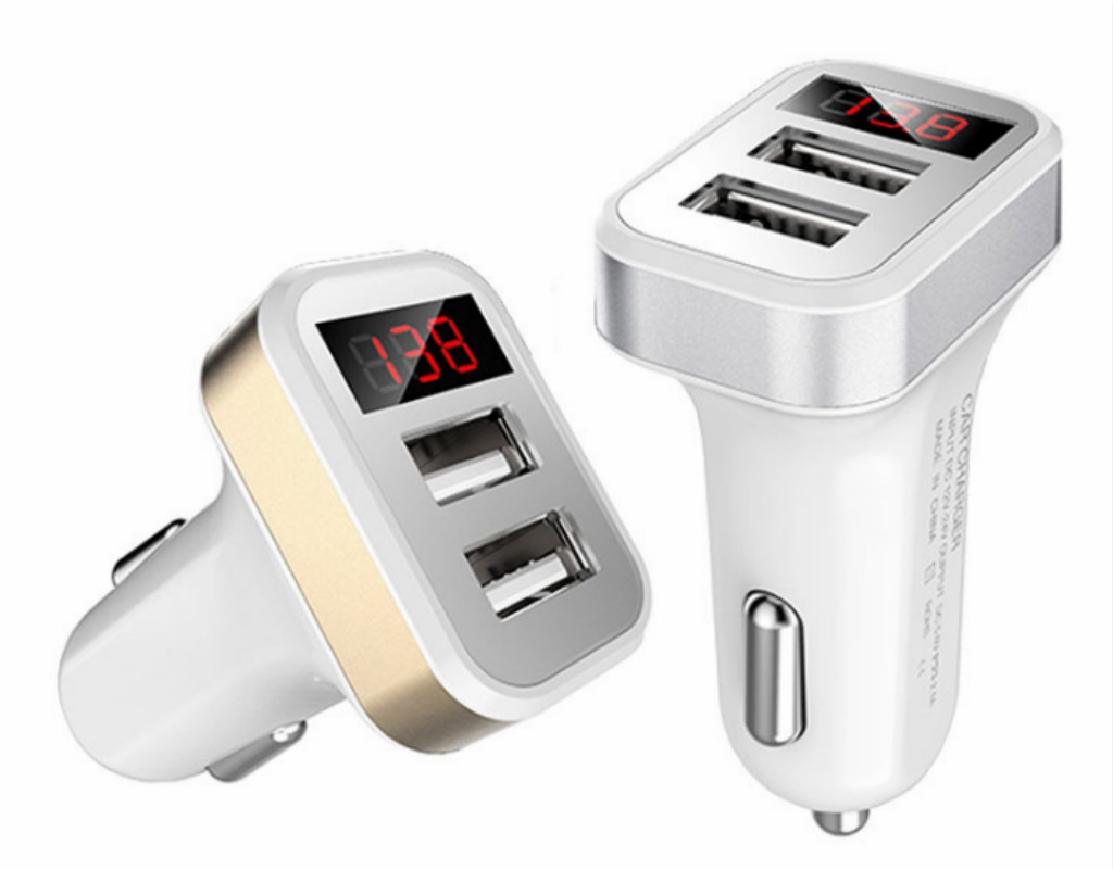 012 數(shù)顯車載充電器點煙器 USB多功能汽車手機充電器車充