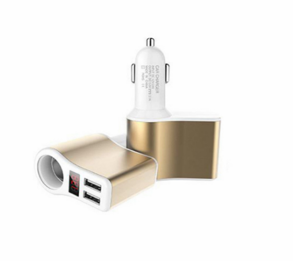 012 數(shù)顯車載充電器點煙器 USB多功能汽車手機(jī)充電器車充