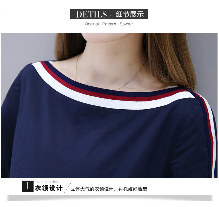 采多寶加肥加大碼女裝2018胖妹妹春裝露肩蝴蝶結撞色上衣廠家