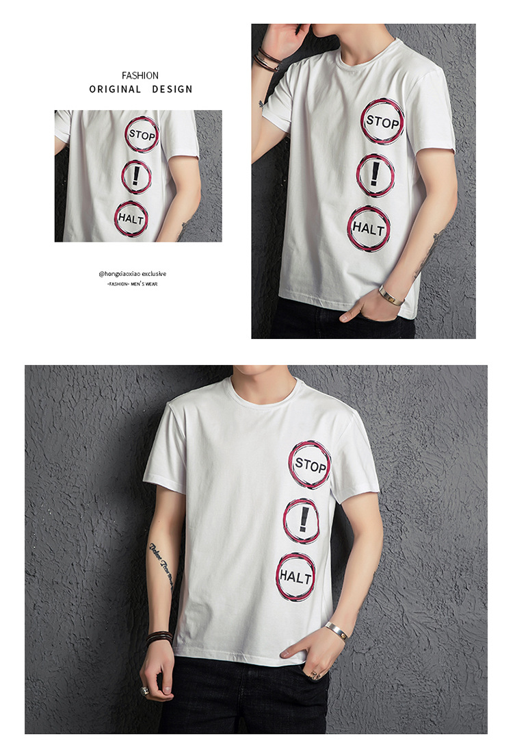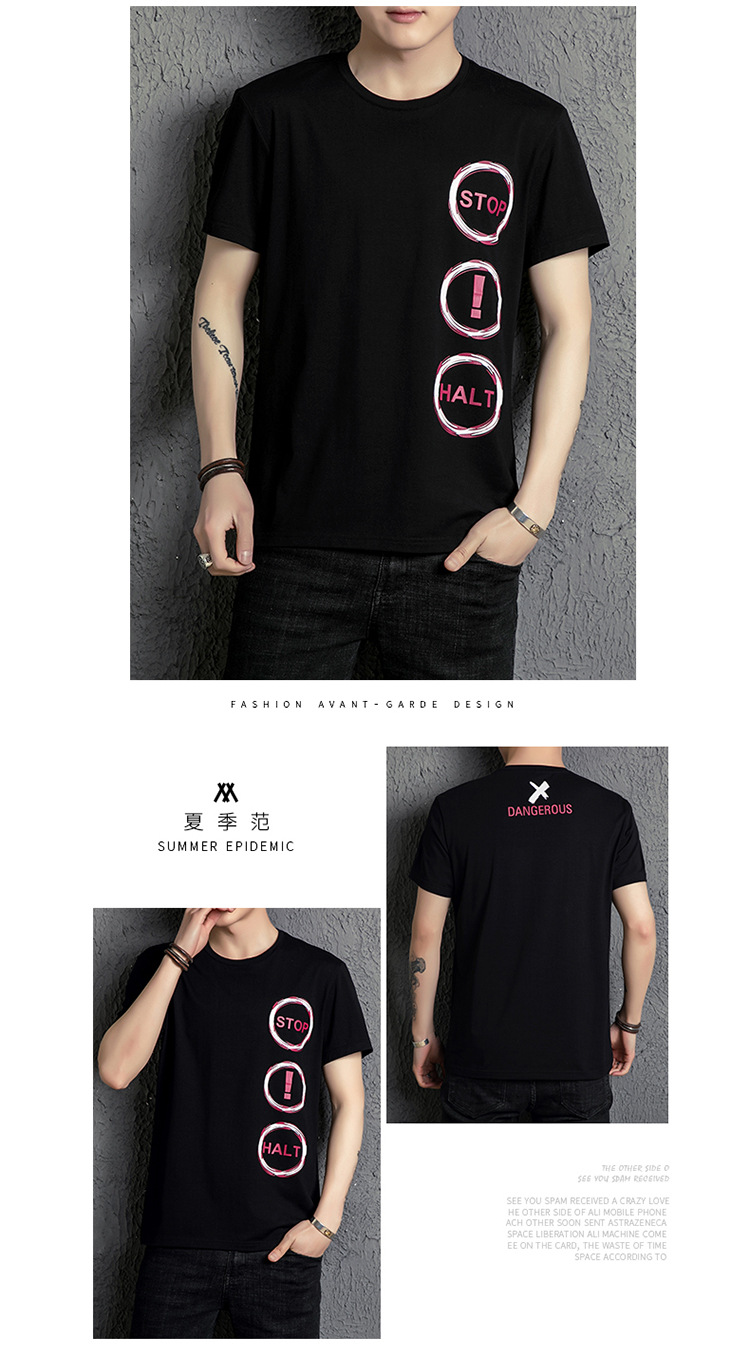 2018夏季男士時(shí)尚潮流印花短袖T體恤男圓領(lǐng)簡(jiǎn)約半袖青少年潮