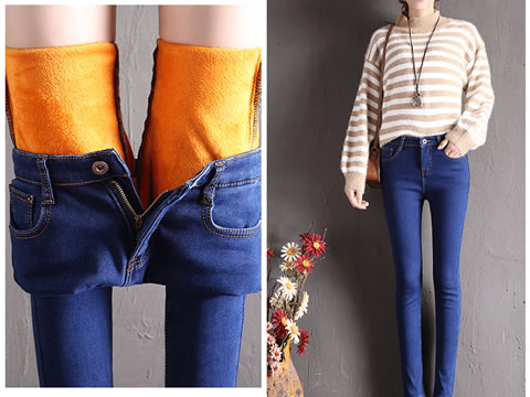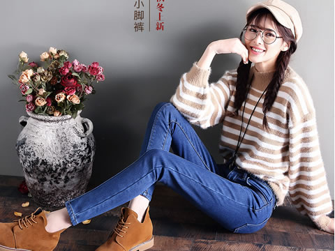 風(fēng)向陽光加絨牛仔褲女韓版高腰秋冬季小腳鉛筆褲2017寬松彈力