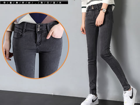 高腰牛仔褲女長(zhǎng)褲2017秋冬季新款煙灰色小腳鉛筆黑色加絨褲子